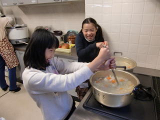 「おいしくなーれ」と念じて、ひたすら鍋をかき回します。