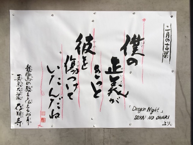 僕の正義がきっと 彼を傷つけていたんだね (「Dragon Night」 SEKAI NO OWARI)