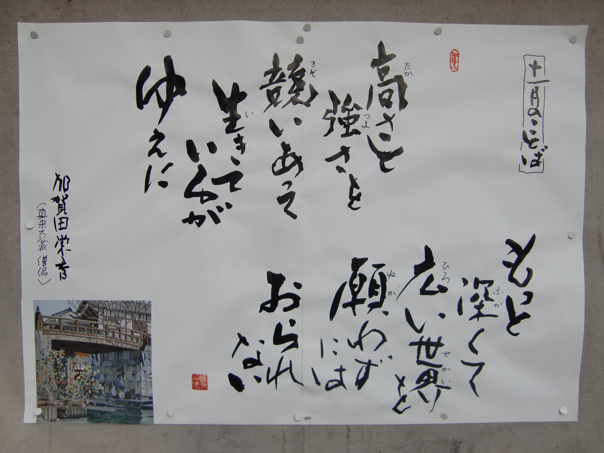 教える世界は冷たいが 教えられる世界は温かい 教えられたところから出た言葉は 体温を持つ 体温をもった言葉は 必ず相手を包み 相手に響いていく (松本梶丸)