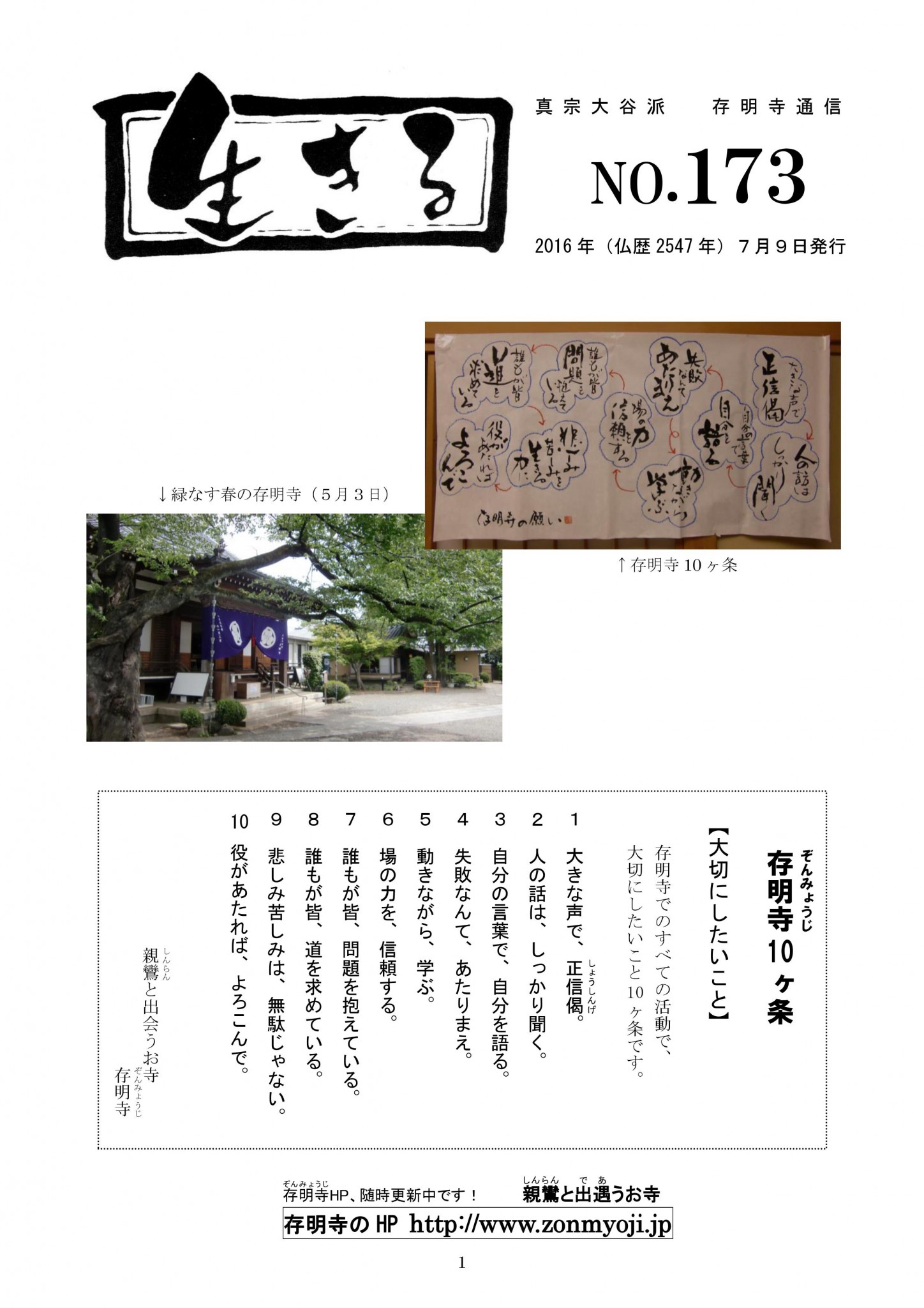 真宗大谷派 存明寺通信『生きる』 174号です。