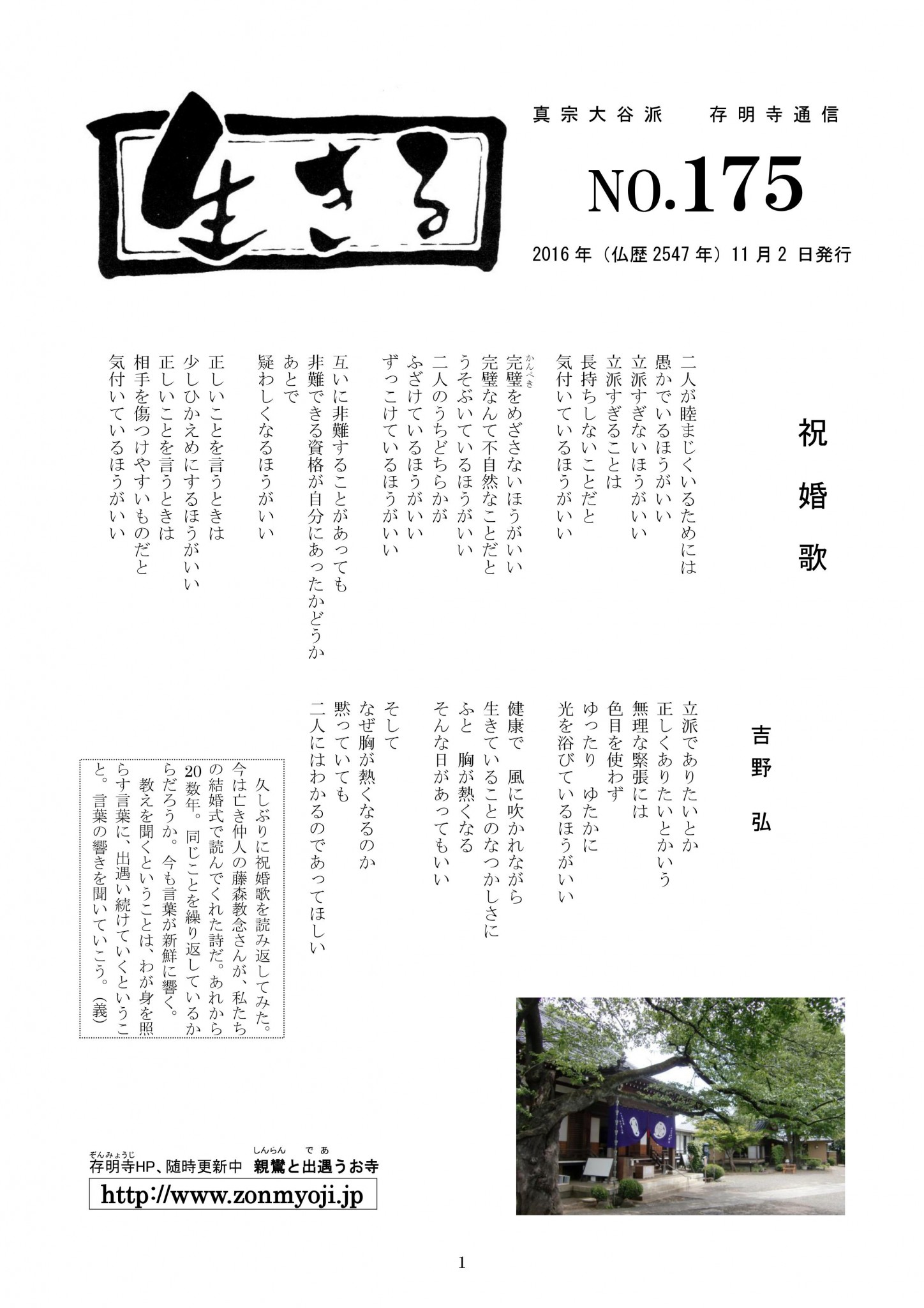 真宗大谷派 存明寺通信『生きる』 175号です。