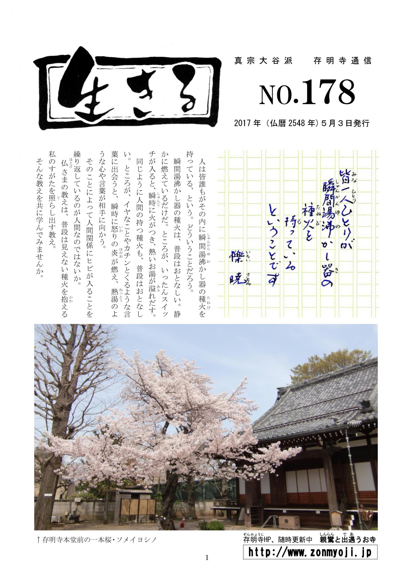 真宗大谷派 存明寺通信『生きる』 178号です。
