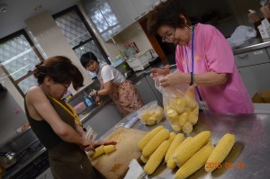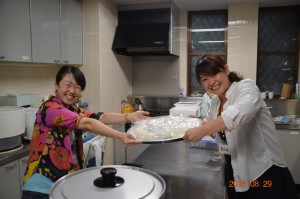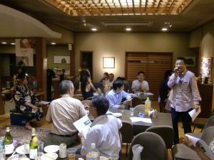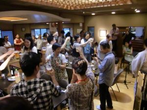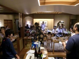 *青年の集いはすごい!。気持ちだけ青年の人達がいろいろと豪華な料理とお酒を運んでくれる青年の人達に申し訳ないです~と言いながらこれは美味しいだのいまいちだの贅沢ざんまい。片隅でおおいに盛り上がっていました。(良子)