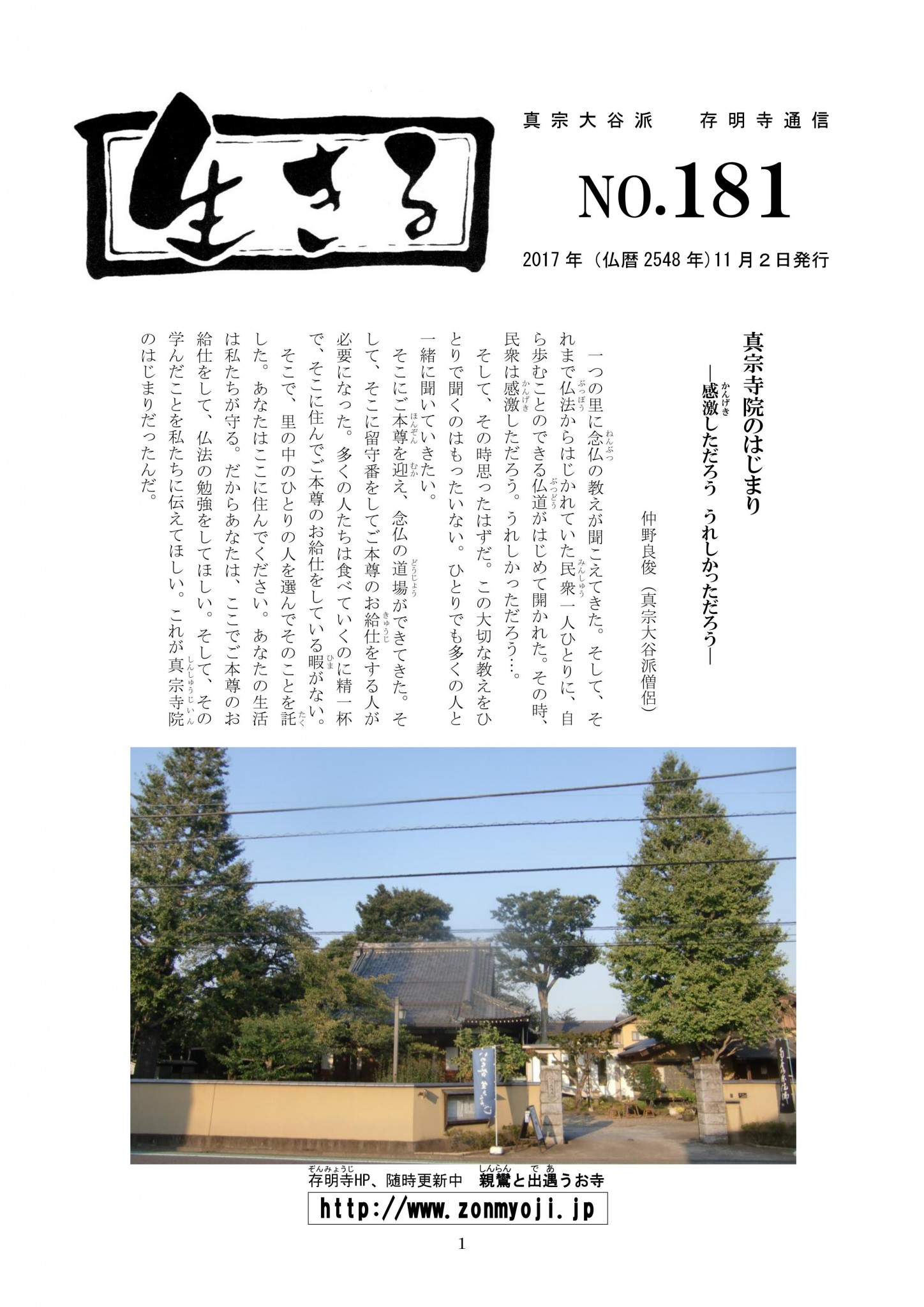 真宗大谷派 存明寺通信『生きる』 181 号です。 発行日 2017年(仏暦2548年)11月2日 ≪目次≫ 表紙⇒真宗寺院のはじまり(仲野良俊) 2頁⇒法話「もうひとつのウサギとカメ」 3頁⇒お寺の掲示板・行事報告(こ […]